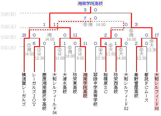 優勝:湘南学院、準優勝:大和シルフィード98、第3位:横須賀横須賀シーガルズFC