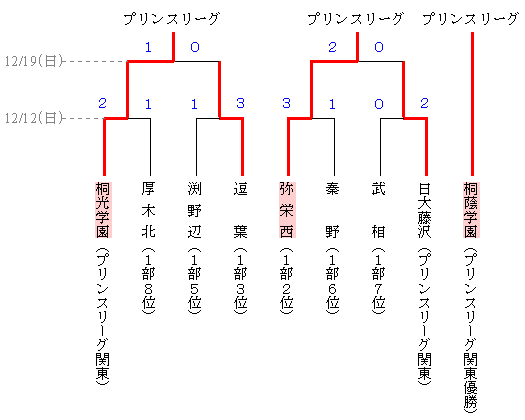 | 代表決定戦 | 12/19(日) | 桐光学園 | 10:00 | 桐光学園 | 1 | 0-0 | 0 | 逗葉 |