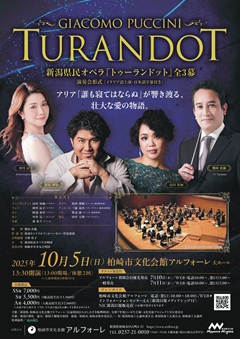 今日は柏崎市文化会館アルフォーレで開催される新潟県民オペラ「トゥーランドット」全3幕です。演奏会形式で、イタリア語での上演です。