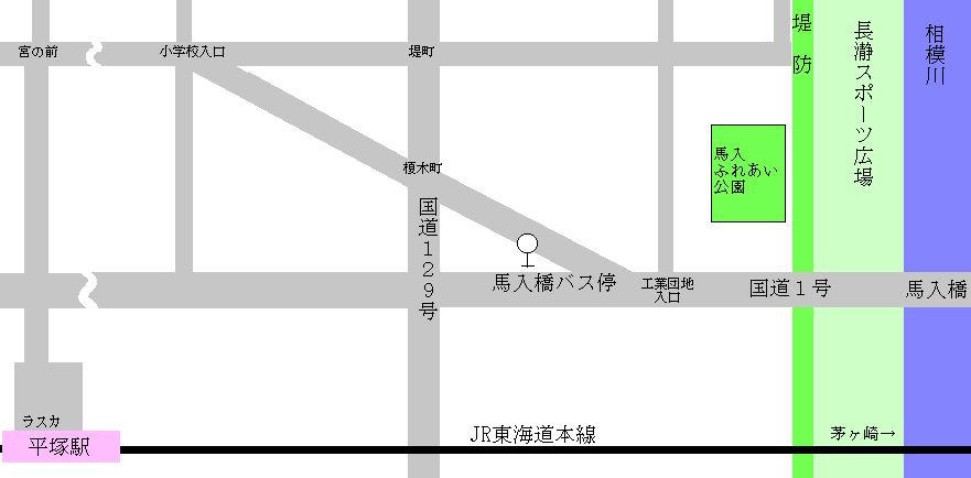 平塚駅北口 バス4番線 茅ヶ崎駅行き「馬入橋」バス停下車 徒歩10分 大人片道170円