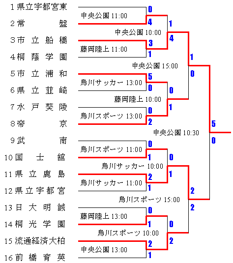 | 中央公園 | 10:30 | 市立船橋 | 5 | 4-0 | 0 | 県立鹿島 |