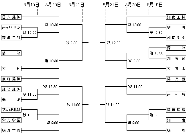 | 湘南高校 | 9:00 | 湘南 | 9 | 7-1 | 1 | 藤沢翔陵 | |