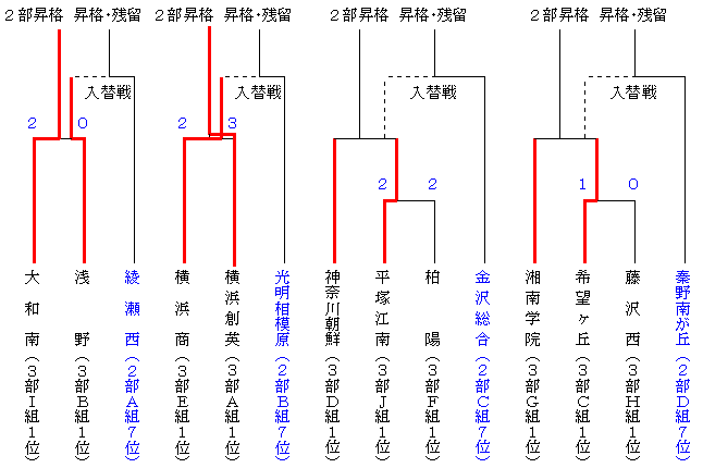 | 逗子開成 | 0●1 | 1●3 | 0●1 | 1●2 | 2○1 | ------ | 2○1 | 2○0 | 9 | 6 | |