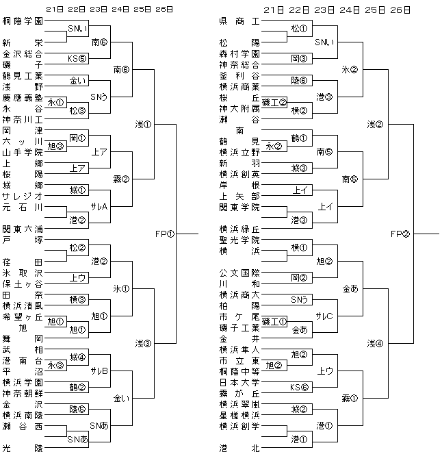 横浜:横、松陽:松、金井:金、横浜南陵:陵、旭:旭、金沢総合:KS、港北:港、鶴見:鶴、