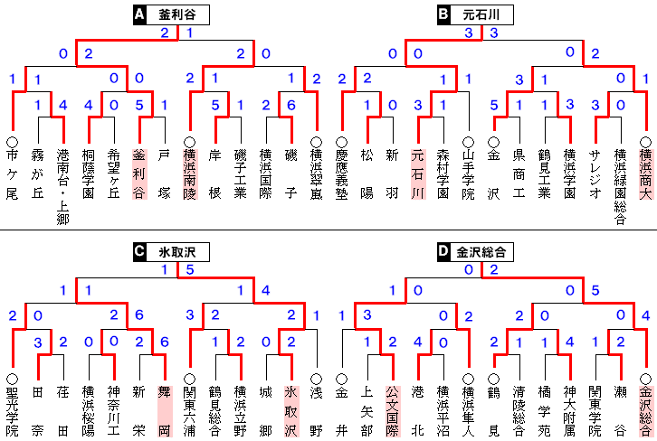 | 金沢総合 | 9:00 | D | 金沢総合 | 4 | 2-0 | 0 | 瀬谷 | |