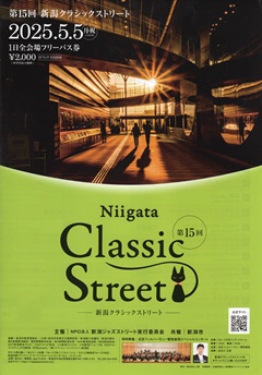 かつては、ゴールデンウィークと言えばラ・フォル・ジュルネ新潟で賑わっていた時代もありましたが、今となっては、古き良き時代の思い出です。地方都市でも、金沢では大型の音楽祭が開催されていますが、観光・文化都市の金沢と張り合っても勝ち目はなく、新潟は身の丈にあったクラシックストリートで盛り上がりましょう。