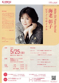 こんな海老彰子さんのリサイタルが、カワイの主催で新潟で開催されると知り、是非とも聴きたいと思いました。以前に新潟で演奏されたことがあるそうですが、私は今回初めて聴かせていただきます。
