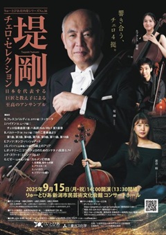 今日は日本を代表するチェリストである堤 剛さんと、その門下生の新倉 瞳さん、西田 翔さん、ルプランス楚亜さんらによる演奏会です。